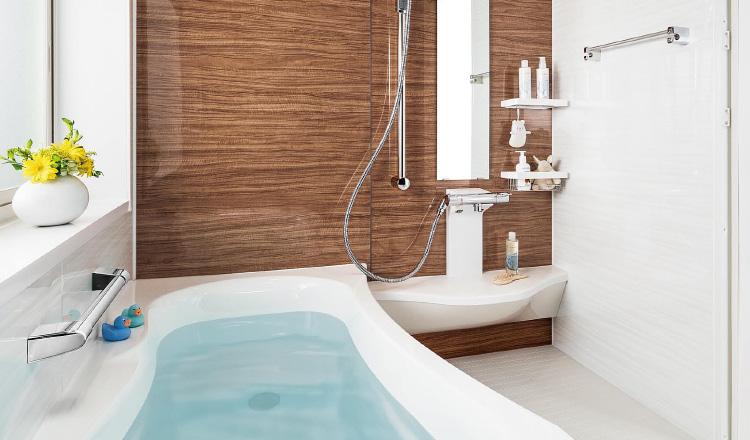 - 足を伸ばしてゆったりと入れる1616サイズのユニットバス