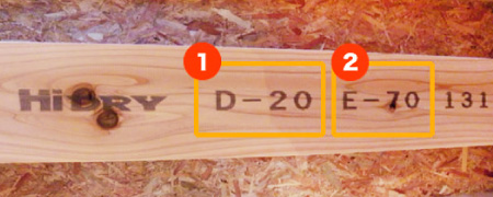 - ヤング係数を記号で表したものです。ヤング係数とは木材に力が加わったときの曲がりにくさを表した数字のことを言います。この数字が大きければ大きいほど曲がりにくく強度が優れているといえます。一般的に杉のヤング係数はE70ですが、当社ではE70・E90・E110の杉をバランス良く使用していますので、地震に強い建物が出来るのです。