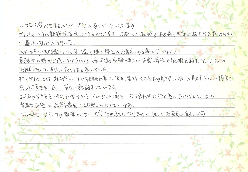 お客様より頂いたお手紙の紹介をさせて頂きます